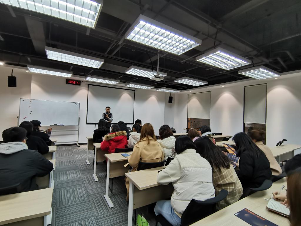 山东大学国际创新转化示范基地主任刘振为来访师生带来了精彩讲座。刘振表示,创新转化在如今的社会发展中无处不在,当代大学生要掌握学习生活与创新转化的结合,将理论学习与实践应用相关联,多观察多积累,多学多看多想多做,才能为下一步的学习和工作打下坚实基础。随后刘振老师解答了来访师生关于基地运营方面相关的问题。