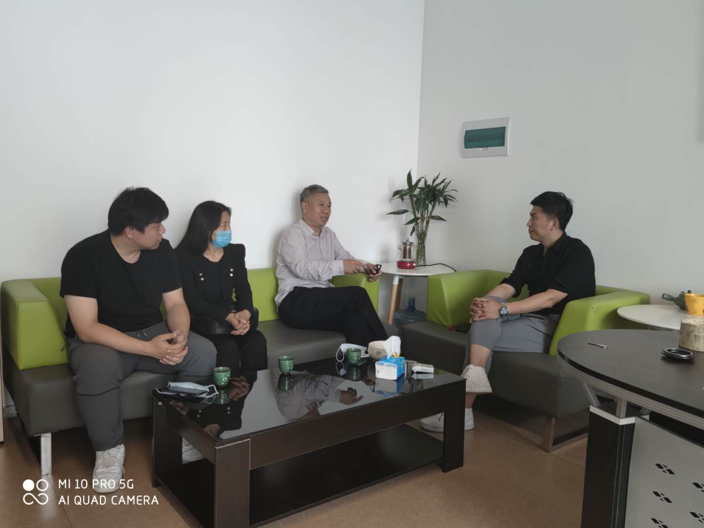 办公室主任郑海涛一行来到山东大学国际创新转化示范基地万科中心(以下简称基地)调研入驻企业经营情况,基地主任助理王群陪同调研。