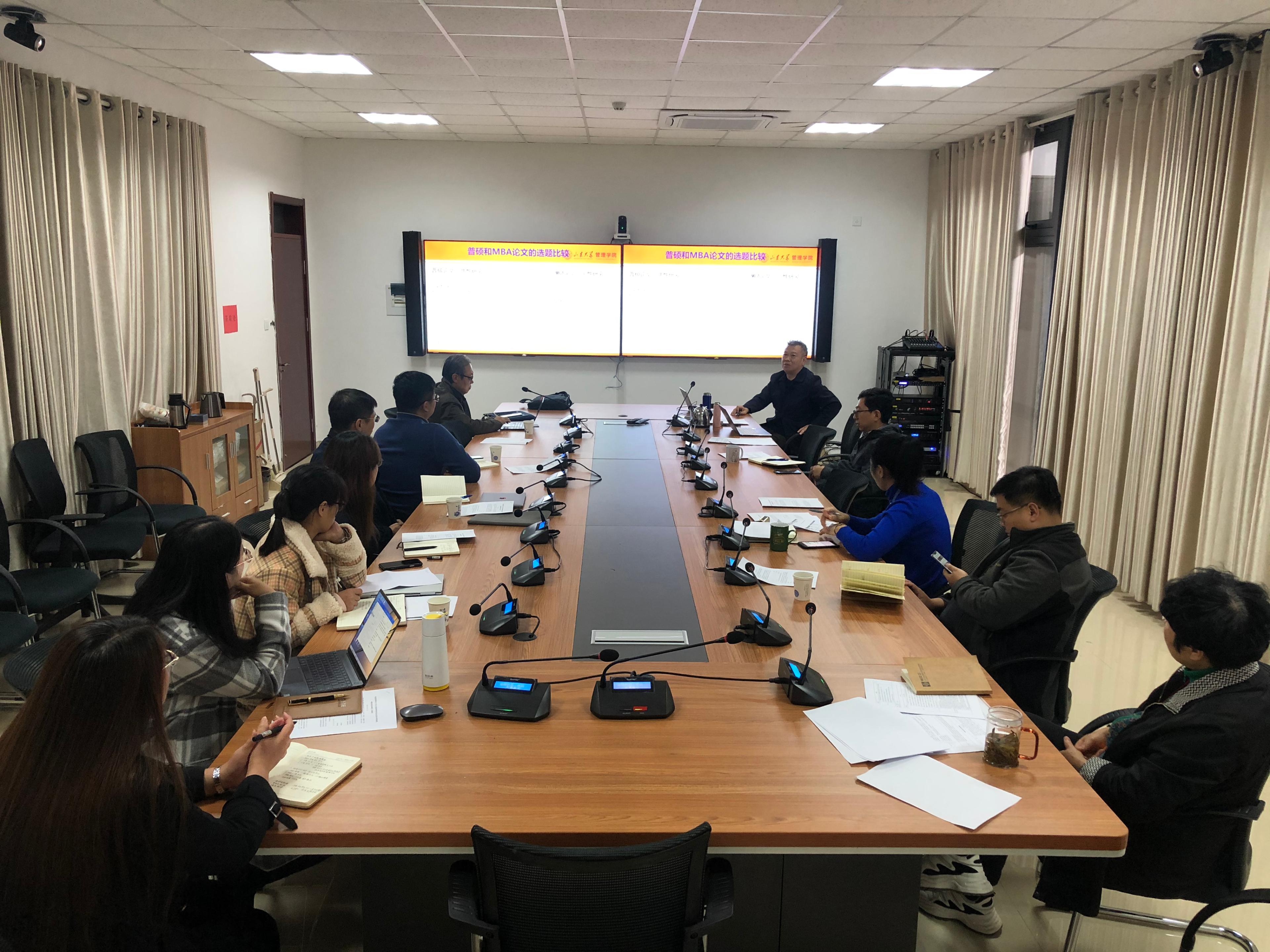 院长陈志军参加会议并作“MBA学位论文写作”讲座,副院长乔岳主持会议。