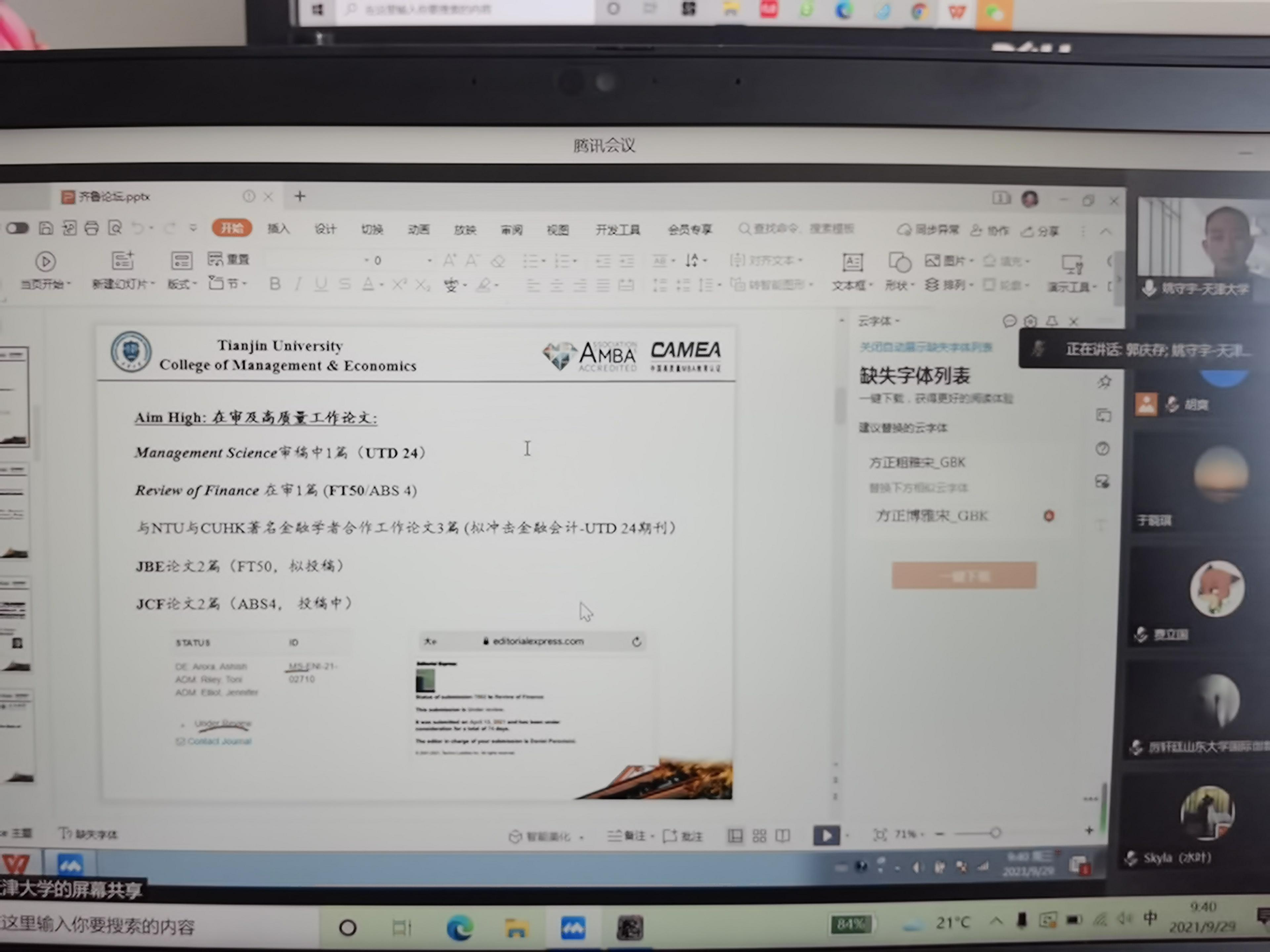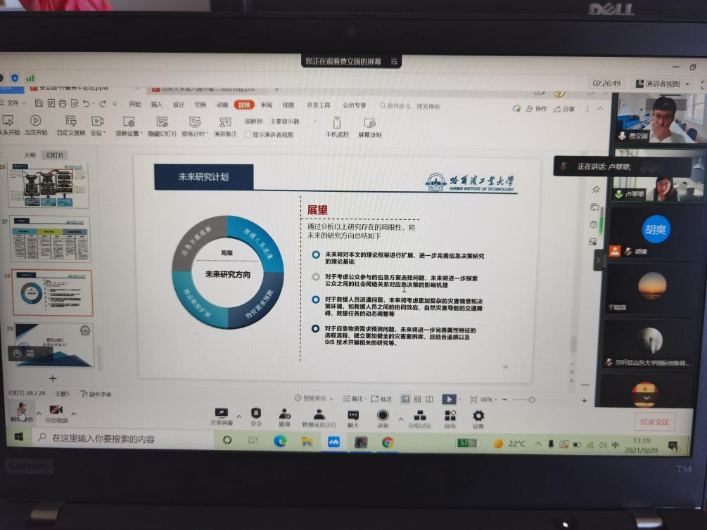 与会青年教师卢翠翠、赵云、张武从全球创新指数研究、海洋碳汇、公司创新等方面与青年学者进行了充分交流,期待大家加强学术沟通,共同进行课题研究。