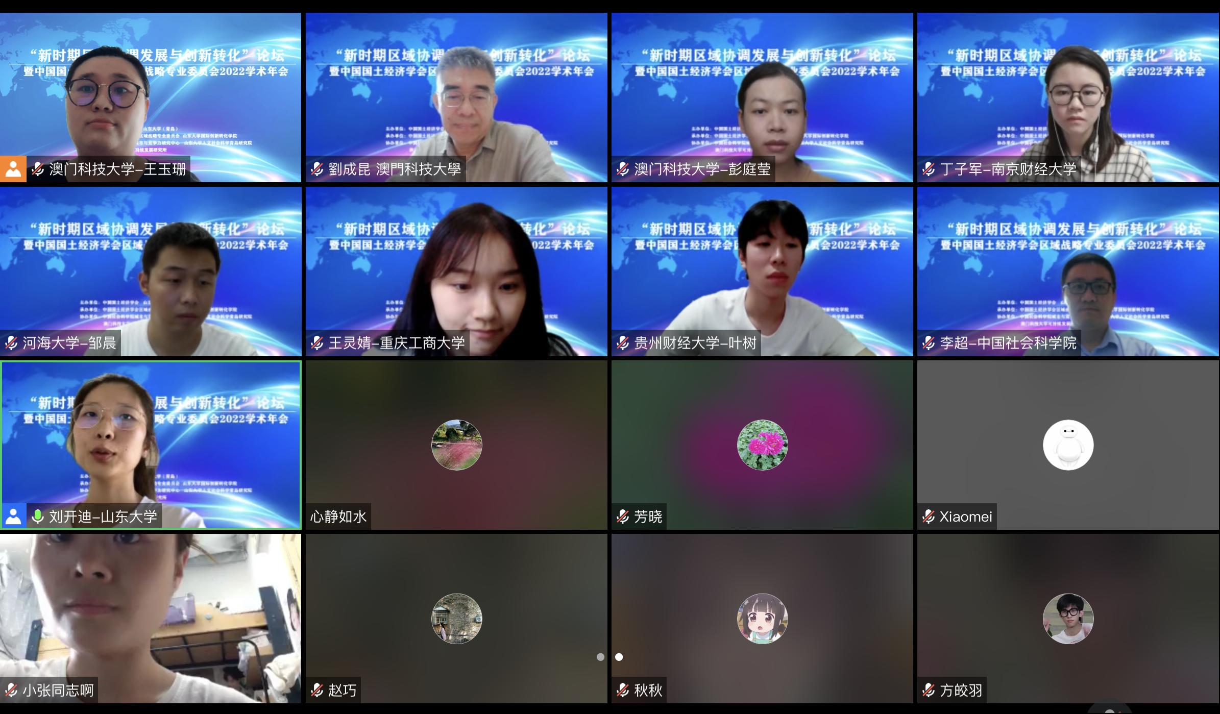 城市与竞争力研究中心、山东大学人文社会科学青岛研究院、澳门科技大学可持续发展研究所协办的“新时期区域协调发展与创新转化”论坛暨中国国土经济学会区域战略专业委员会2022学术年会通过线上形式顺利召开,并通过中国国土经济学会所属《今日国土》抖音、微信公众号等渠道同步直播。