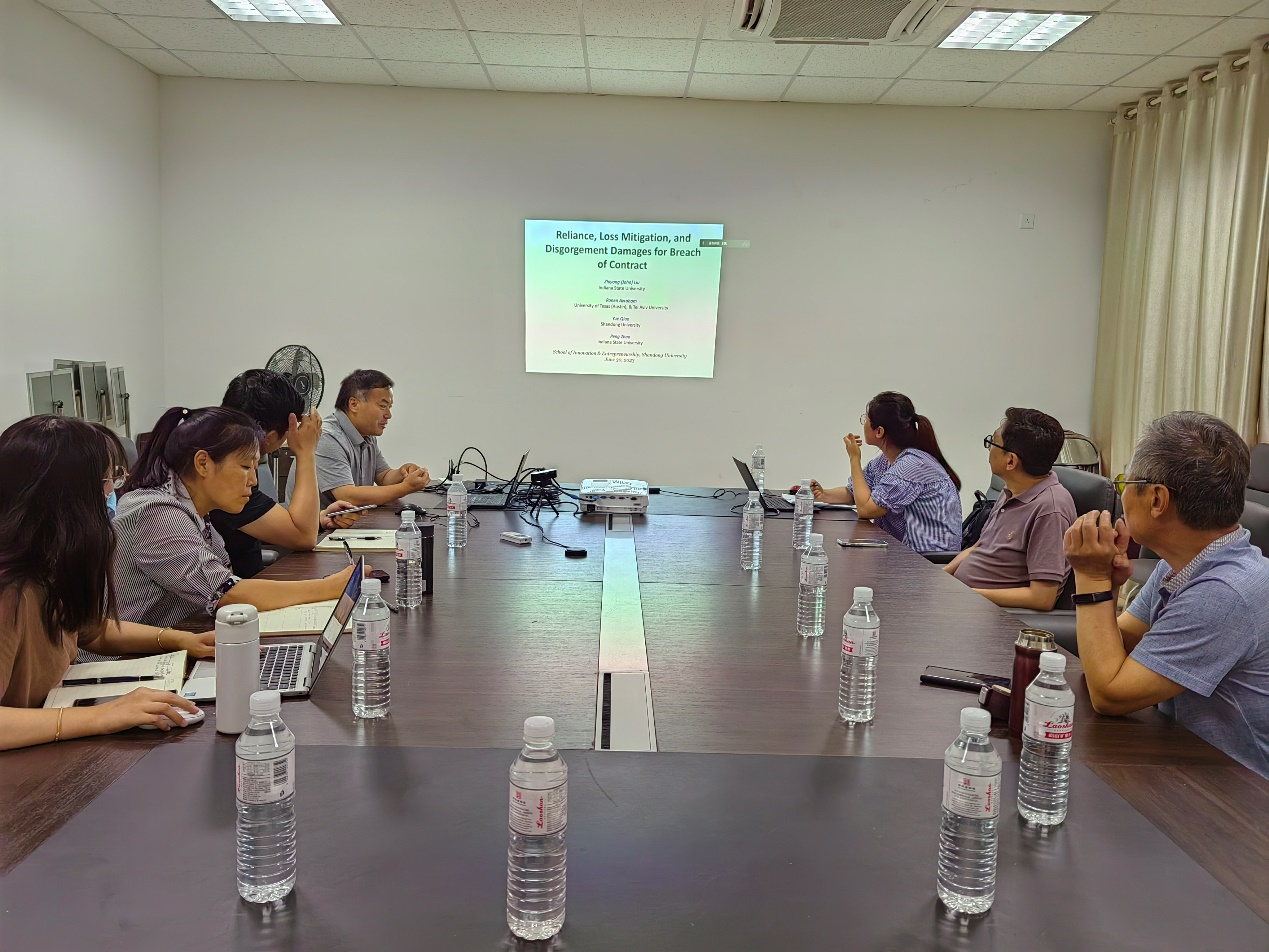 在华岗苑东331会议室举办学术讲座,美国印第安纳州立大学刘智勇教授分享了题为“Reliance, Loss Mitigation, and Disgorgement Damages for Breach of Contract”的相关研究成果。讲座由spbo1即时比分足球比分