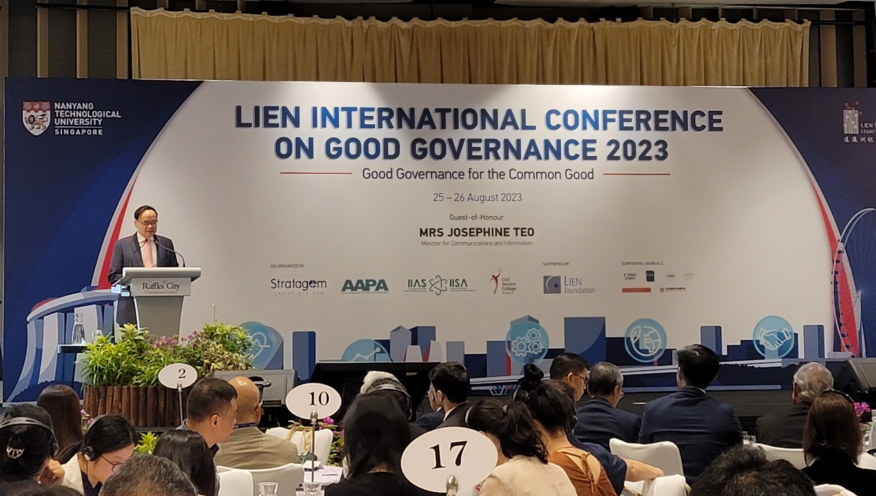 2023年8月25日-26日,新加坡南洋理工大学南洋公共管理研究生院和连瀛洲纪念奖学金主办的2023连氏善治国际会议在新加坡举行。本次会议以“公共产品的善治”为主题, 吸引了来自20多个国家300多位学者、专家和研究人员的共同参与,我国清华大学、北京大学、中国人民大学、厦门大学、山东大学、南开大学、中国农业大学、重庆大学等高校学者参加了会议。