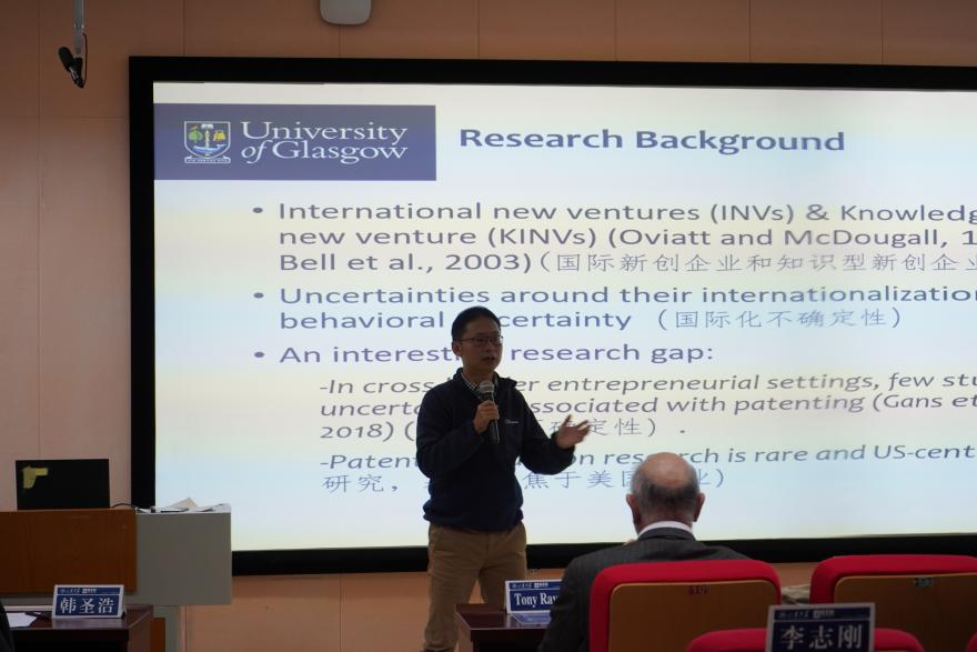副教授季俊哲做了《专利不确定性和不同制度环境下的生存: 基于一家中国知识型国际新创企业的纵向研究》,通过对中国朗科公司案例研究分析,探讨专利不确定性在知识型国际新创企业情景下的产生条件和国际新创企业如何与制度环境互动来赢得有利的专利有效性结果和生存机会。