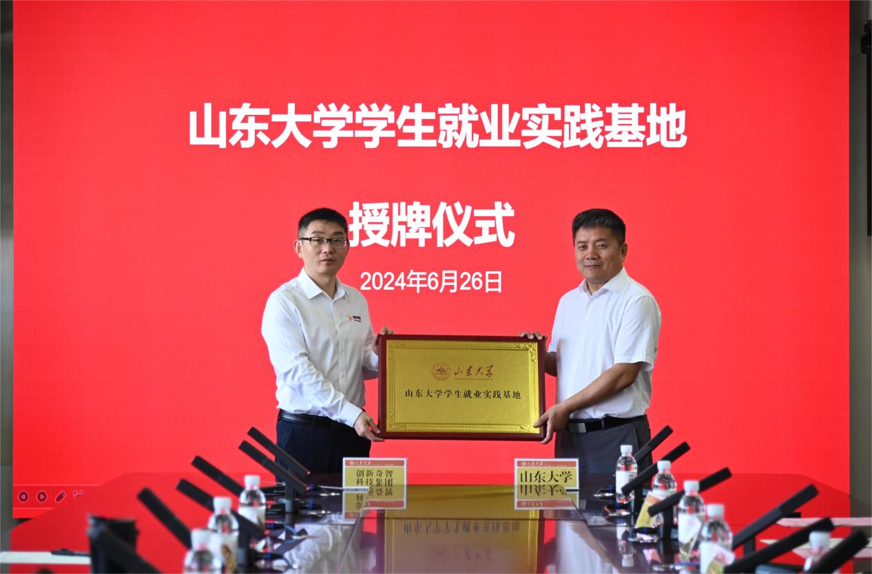 随后,双方举行“山东大学学生就业实践基地”授牌仪式,山东大学青岛校区学科建设与研究生教育办公室常务副主任屠长河进行授牌。
