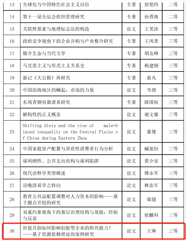 副研究员王琳老师发表在中文管理学顶刊的论文《价值共创如何影响创新型企业的即兴能力?——基于资源依赖理论的案例研究》喜获重大科研成果奖励三等奖。