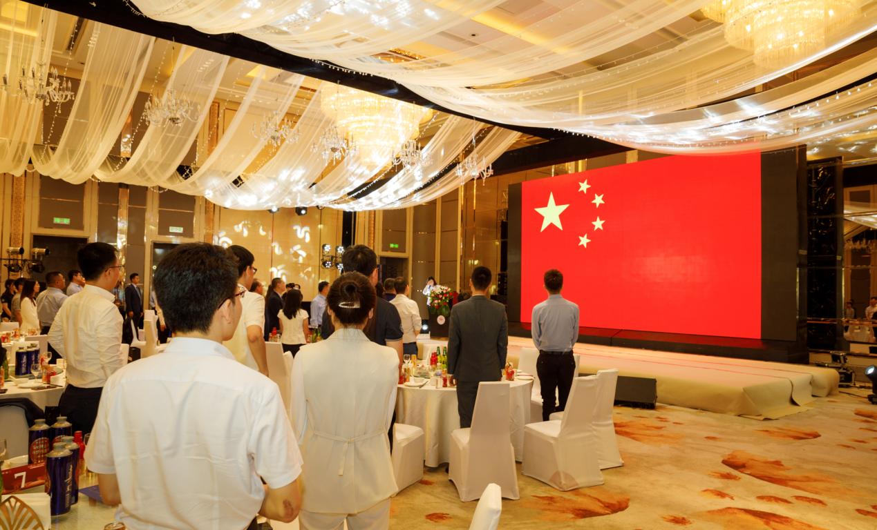 典礼伊始,全场起立,奏唱国歌