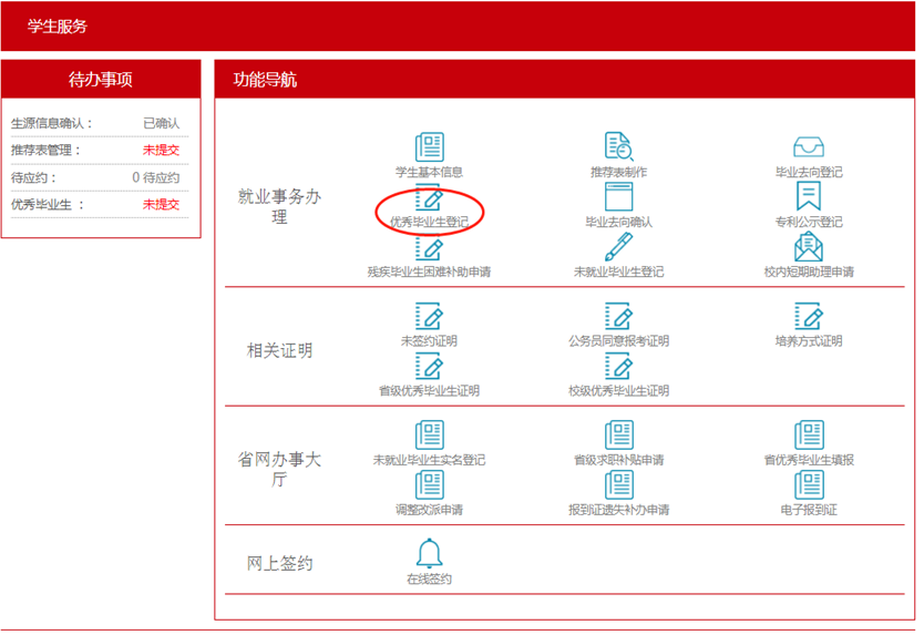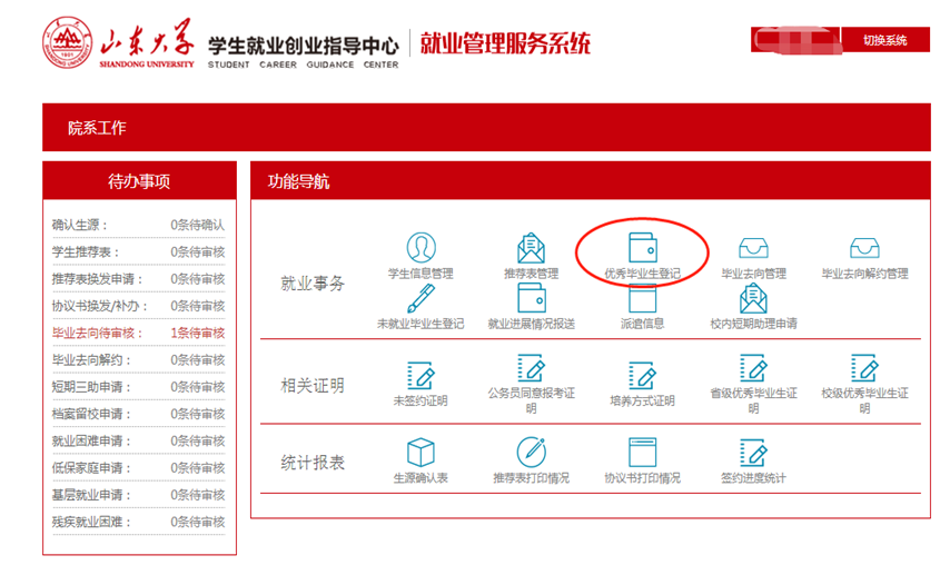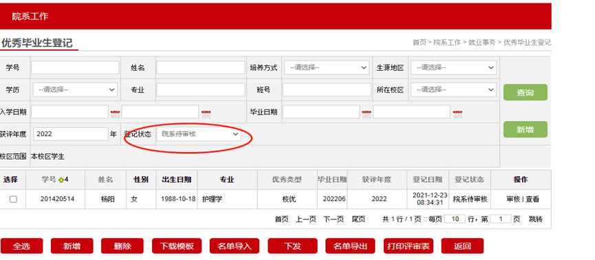 (培养单位)可在“优秀毕业生登记”栏目查看待审核学生名单,审核通过后提交至就业中心等待学校审核。