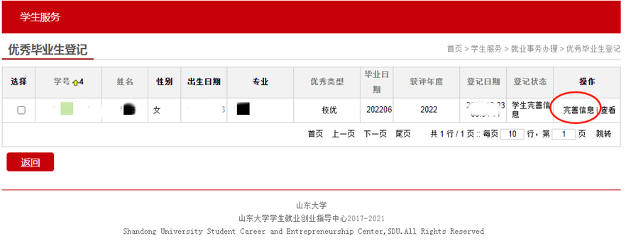 学生登录“山东大学就业管理服务系统”后,进入“就业事务”-“优秀毕业生登记”,查看并完善登记表相关息,填写无误后提交至spbo1即时比分足球比分