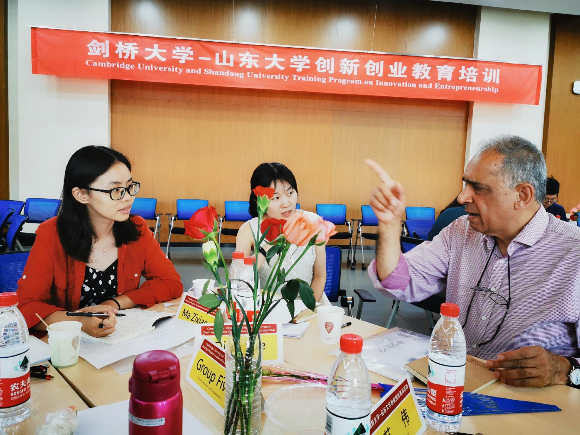 三天的培训将讲授与小组互动和汇报相结合,Shailendra Vyakarnam教授从创业的普及教育、创业教育的通识理念、创意生效的核心课程、企业家精神以及如何培养它、如何走好创业第一步、剑桥大学的创业课程设计及系列活动等方面进行了阐述。他认为,很难去教给学生如何创业,大学在这方面的主要功能应该是培养学生的创新理念、思维和能力,提升个人的自我效能,进而帮助他们更好的创业。他表示,剑桥大学的创新创业工作基本都是跨学科的,非常注重学科之间的碰撞和协同。他详细介绍了剑桥大学针对不对阶段的学生创业者所组织的活动,从企业家周二之夜、Start-Up weekends、创新创业比赛、组织学生与企业家的社交等小活动,到暑期学校、聚焦博士和博士后科研创新的ETECH项目、常规创业指导、团队建设,以及后期孵化、投融资等,他强调学校在学生创新创业过程中提供的体系化、可持续性的支持的重要性。在小组互动环节,Shailendra Vyakarnam鼓励学员从山东大学、山东省的大环境出发,讨论能否开设剑桥课程和相关活动的可行性,以及如何将剑桥的有些活动进行改善,进而开发出适合山大和山东省的项目。各小组对在山东大学的创新创业课程系统的可行性课程设计、能邀请到大学做创业演讲的企业家模范榜样理想人选,创业者在商业熟悉度、社交技能、人员相关三方面应具备的能力等做了热烈的分组讨论和成果汇报。活动最后,张永兵书记为全体学员颁发了剑桥大学结业证书 。