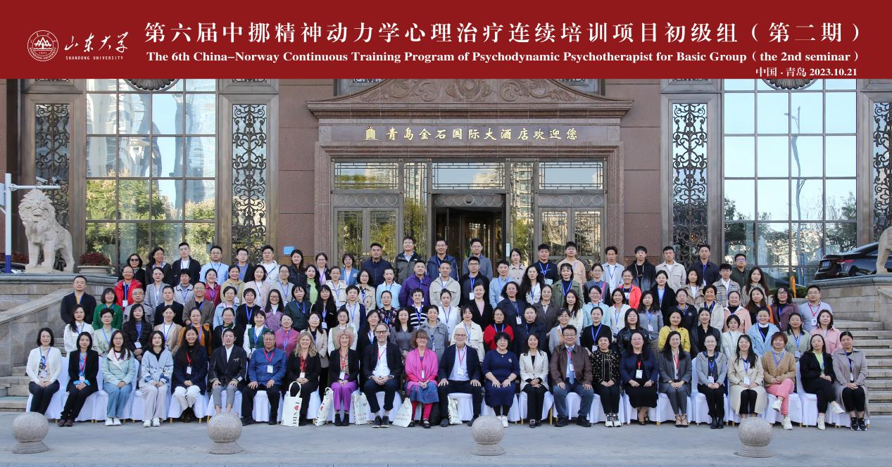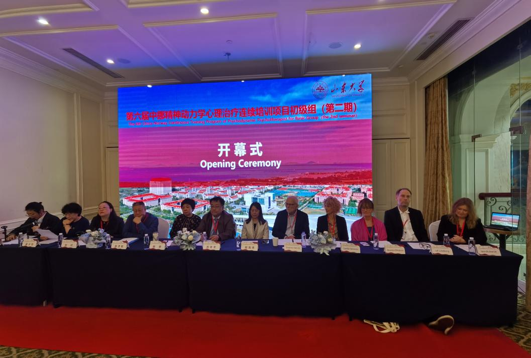 10月21日上午,由首都医科大学附属北京安定医院、山东心理卫生协会大学生心理健康教育与咨询专业委员会以及山东省精神卫生中心联合主办,spbo1即时比分足球比分 承办的“第六届中国-挪威精神动力学心理治疗师连续培训项目 (初级组)”第二期培训开幕式在青岛成功举办。项目的外方发起人前国际精神分析协会(IPA)中国委员会主席Sverre Varvin教授、山东省精神卫生中心业务副院长乔冬冬教授、spbo1即时比分足球比分 办公室主任郑海涛女士出席开幕式。开幕式由中挪初级组项目负责人山东大学吴少怡教授主持。四位来自北欧的心理学专家Camilla Halvarson、Alexandra Billinghurst、Ulf Lindbarg、Hanne-sofie Johnsen Dahl、三位来自国内的心理学专家杨丽、赵丞智、刘红,以及110余位来自全国21省市自治区的心理治疗师共同参加了开幕式。