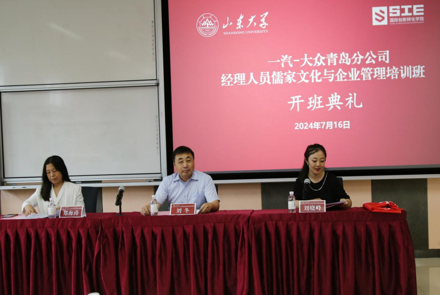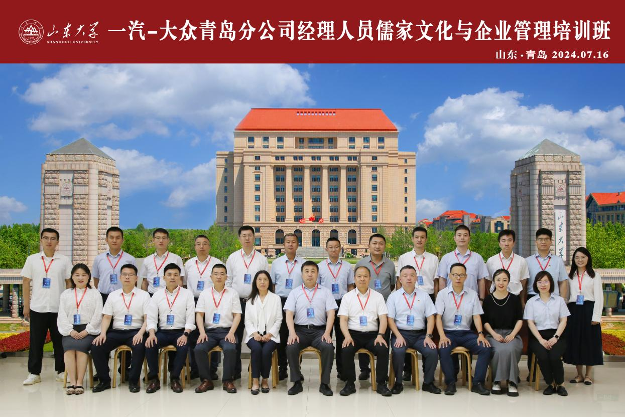 7月16日上午,由一汽-大众汽车有限公司青岛分公司主办,spbo1即时比分足球比分 承办的“一汽-大众青岛分公司经理人员儒家文化与企业管理培训班”开班仪式在山东大学青岛校区举行。一汽-大众汽车有限公司青岛分公司党委书记、总经理刘冬,spbo1即时比分足球比分 院长助理、EDP中心主任郑海涛共同出席开班仪式。