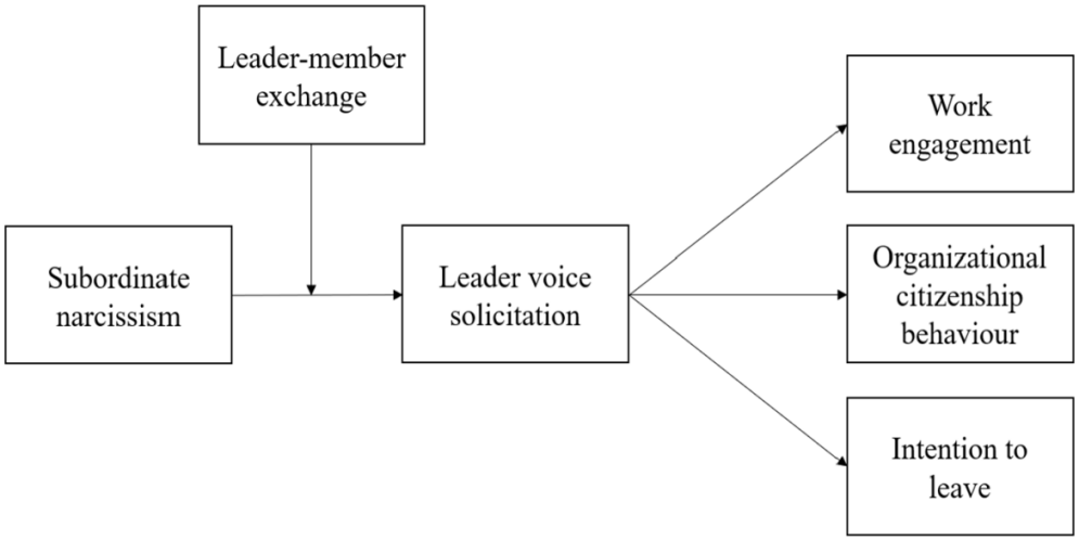 本项目对下属-领导二元样本进行了两项研究。研究结果表明,下属自恋与领导对其建言征询之间存在显著正相关关系(H1),且这一关系随着领导与成员交换关系的提升而增强(H2)。此外,领导建言征询与下属的工作投入和组织公民行为呈正相关关系,与下属的离职意向负相关(H3)。领导建言征询在下属自恋与其工作投入、组织公民行为及离职意向之间起到中介作用(H4)。同时,下属自恋对工作投入、组织公民行为和离职意向的间接效应受到领导与成员交换关系的调节作用(H5)。